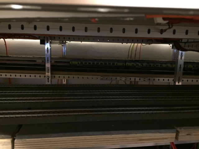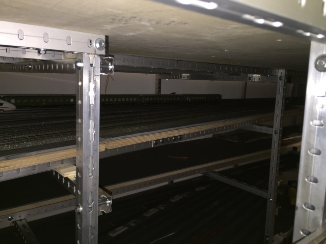 Stephan hatte bereits Ende 2013 begonnen mit Gerd einen kleinen Schattenbahnhof im hinteren Raum nach unserem Plan zu bauen. Die Arbeiten konnten im Sommer 2014 abgeschlossen werden. Eine weitere Baustelle konnte damit geschlossen werden.