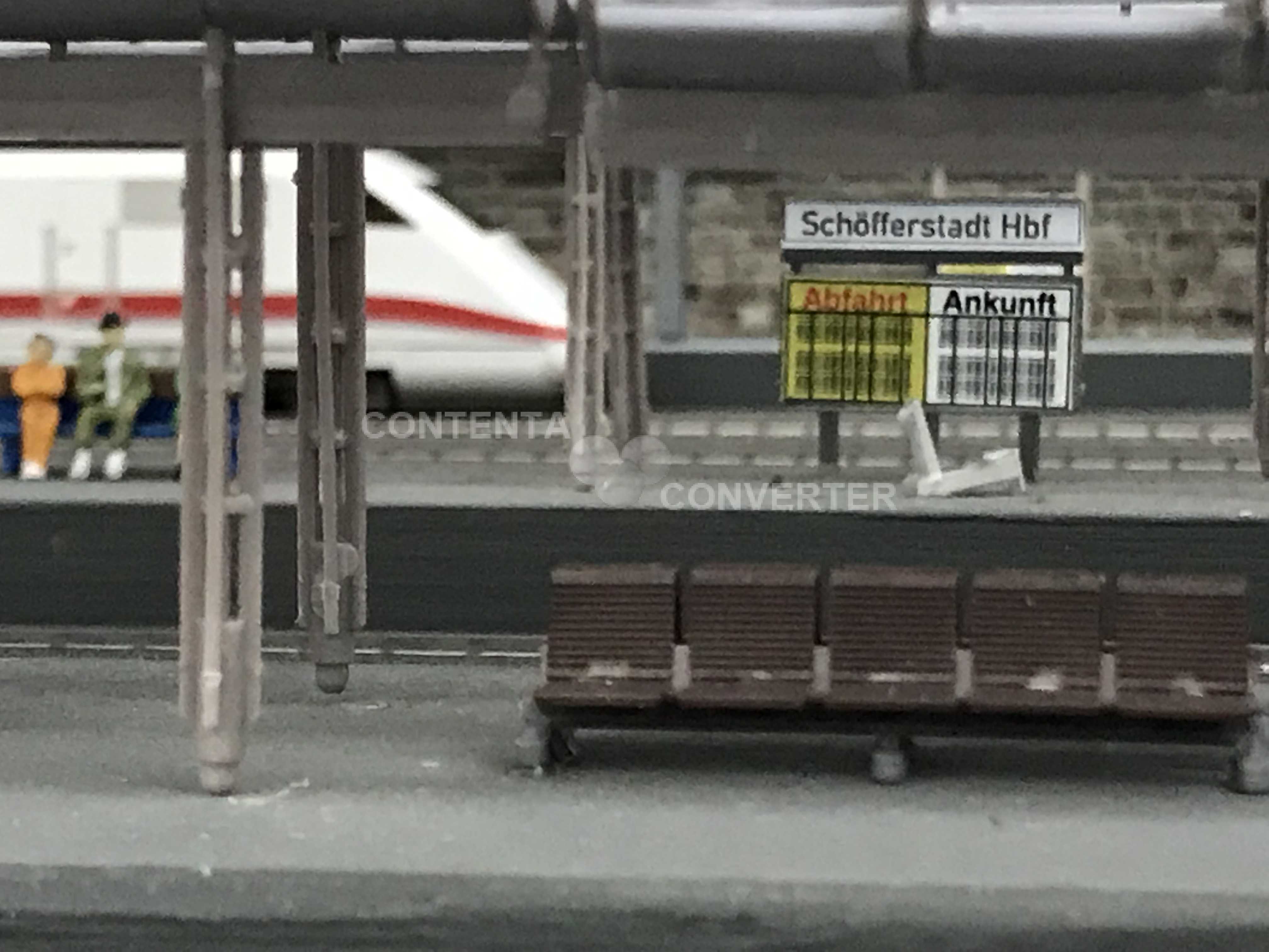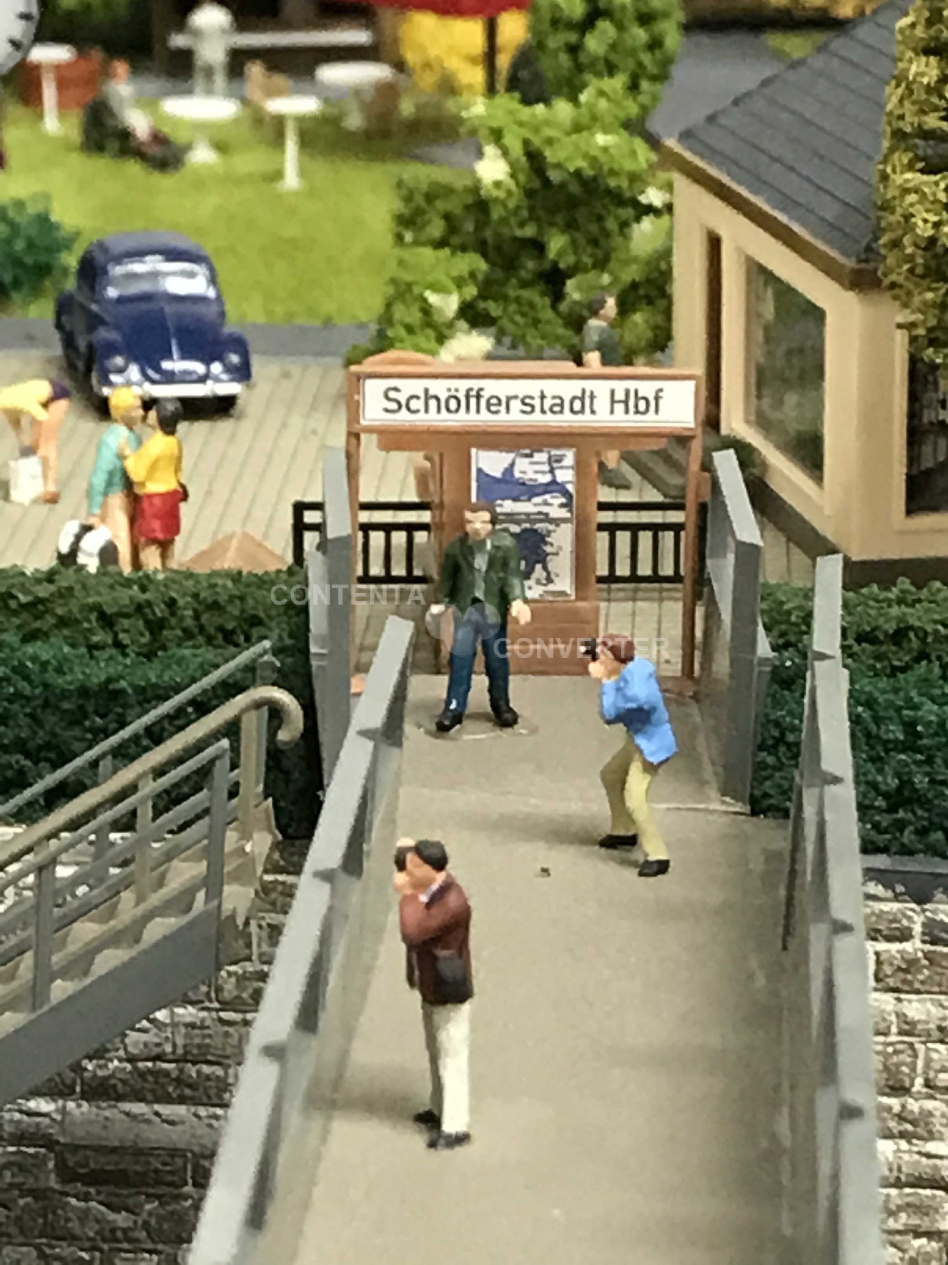 Hier ein Überblick über die Bahnsteige der einen Seite unseres Hauptbahnhofs Schöfferstadt und die Treppen zum Bahnhofsvorplatz. Das sieht doch insgesamt sehr gut aus. Werner ist halt ein Künstler.