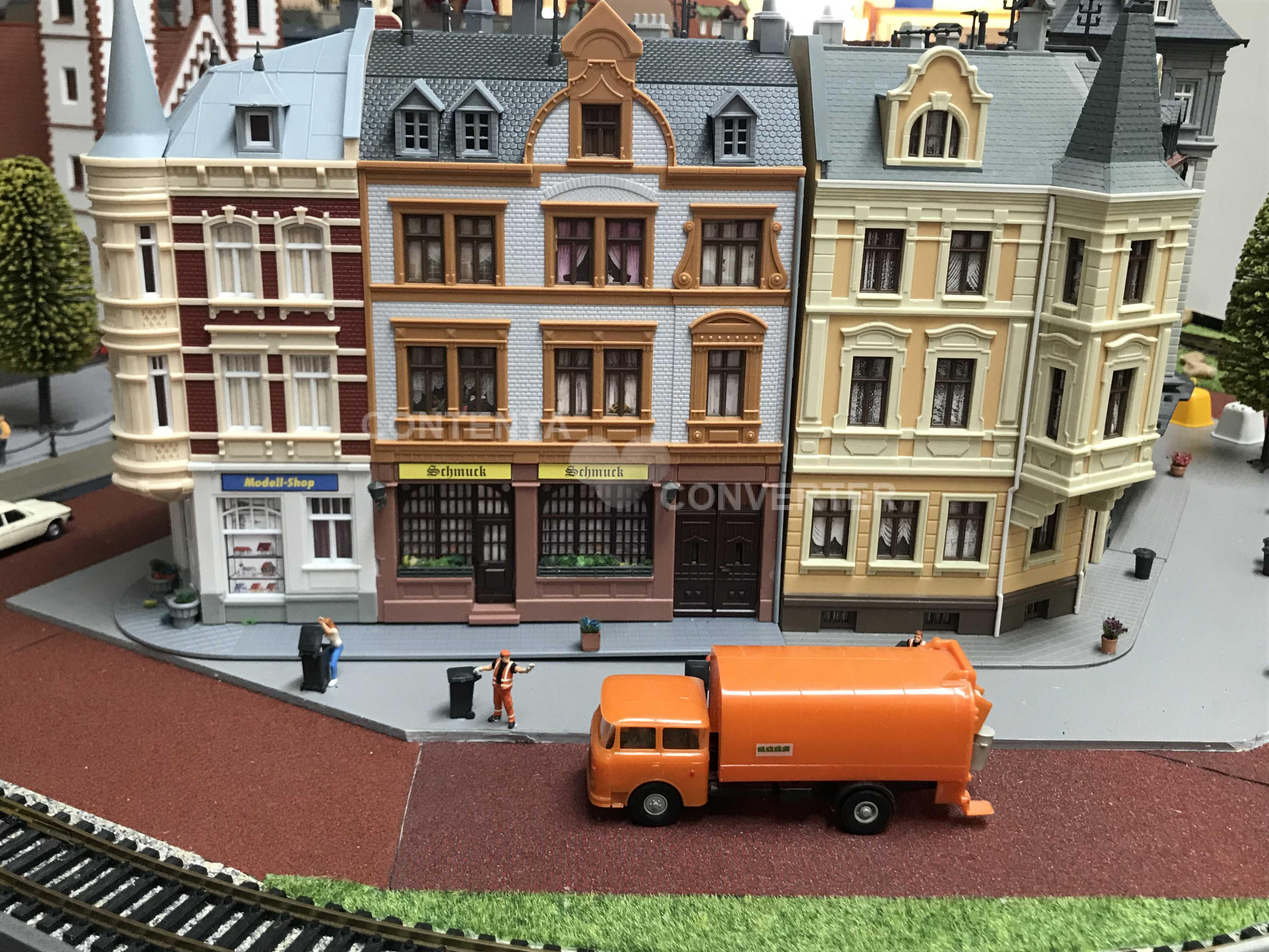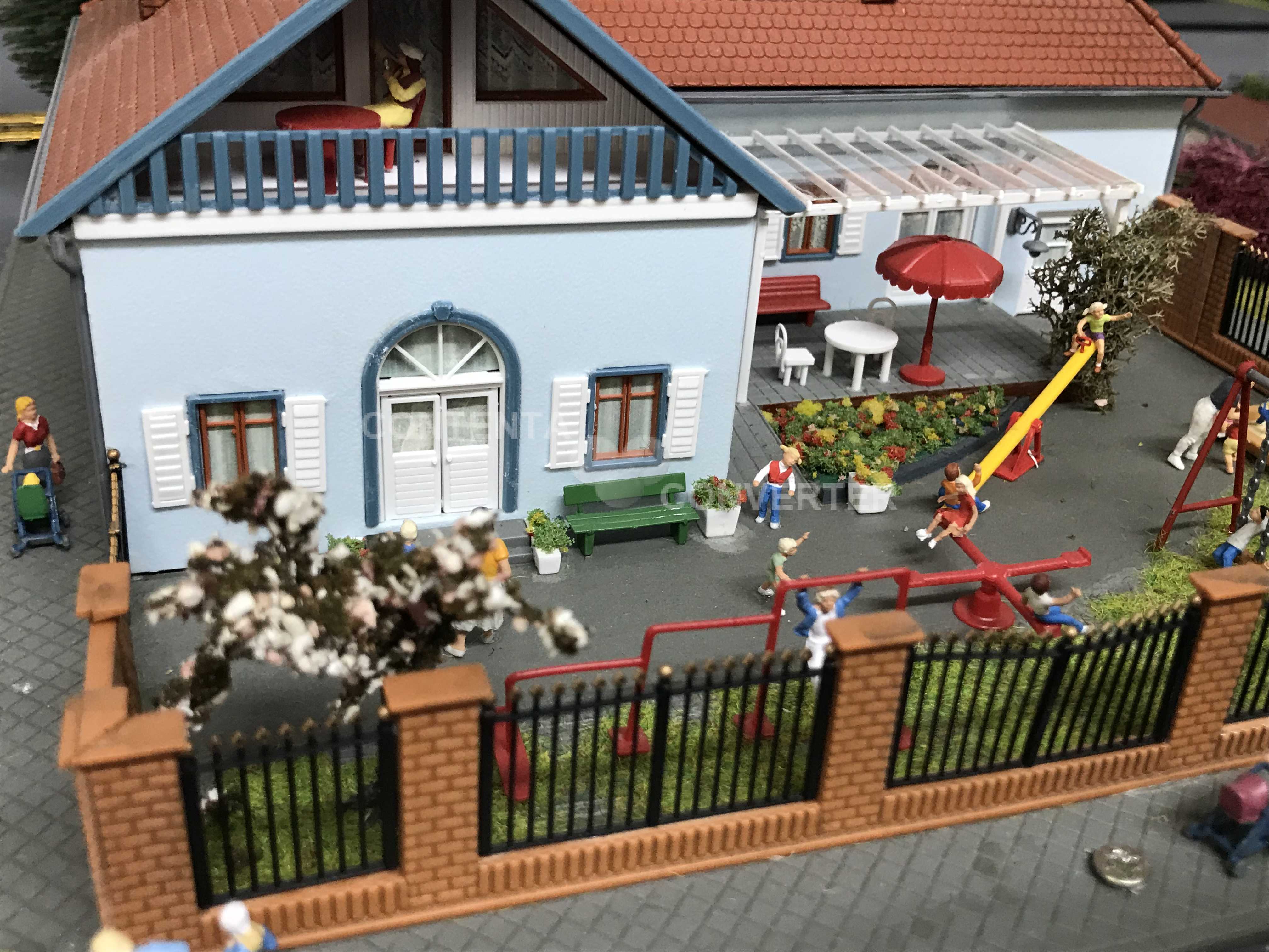 Werner war auch das ganze Jahr mehr als fleißig. Er baute eín Gebäude nach dem anderen: ein Feuerwehrgebäude, ein Polizeigebäude, einen Kindergarten, eine Post, Einkaufsmöglichkeiten, diverse kleine und große Wohnungshäuser, diverse Gewerbegebäude. Unsere Preiserlein-Einwohner müssen natürlich irgendwo wohnen und benötigen natürlich auch einen Arbeitsplatz.