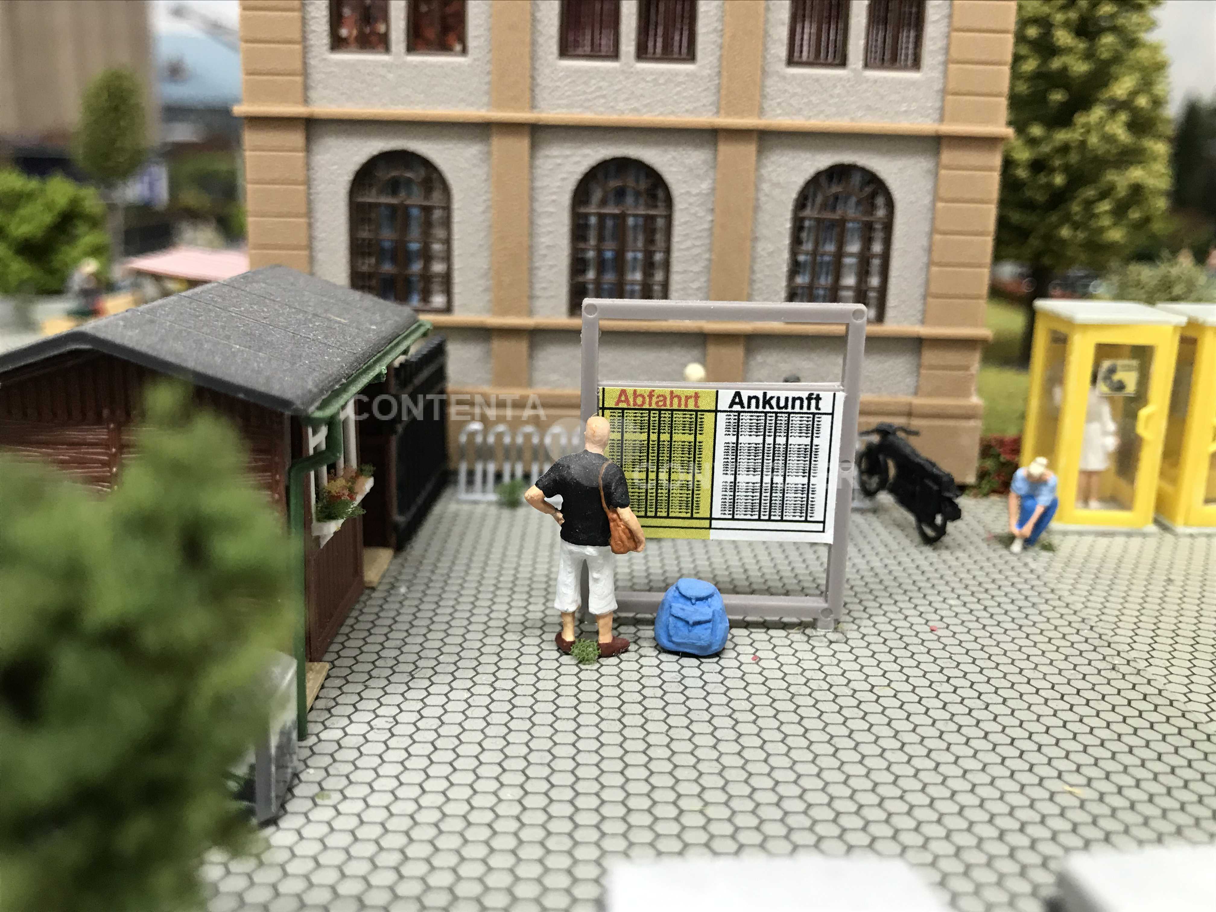 Unsere Preiserlein können sich an den Litfaßsäulen über Neuerungen und Werbung erfreuen. Gepäckwagen stehen für unsere Reisenden bereit. Auch unser Hauptbahnhof wurde schon modernisiert. Es existieren einige moderne Überdachungen an manchen Bahnsteigen.