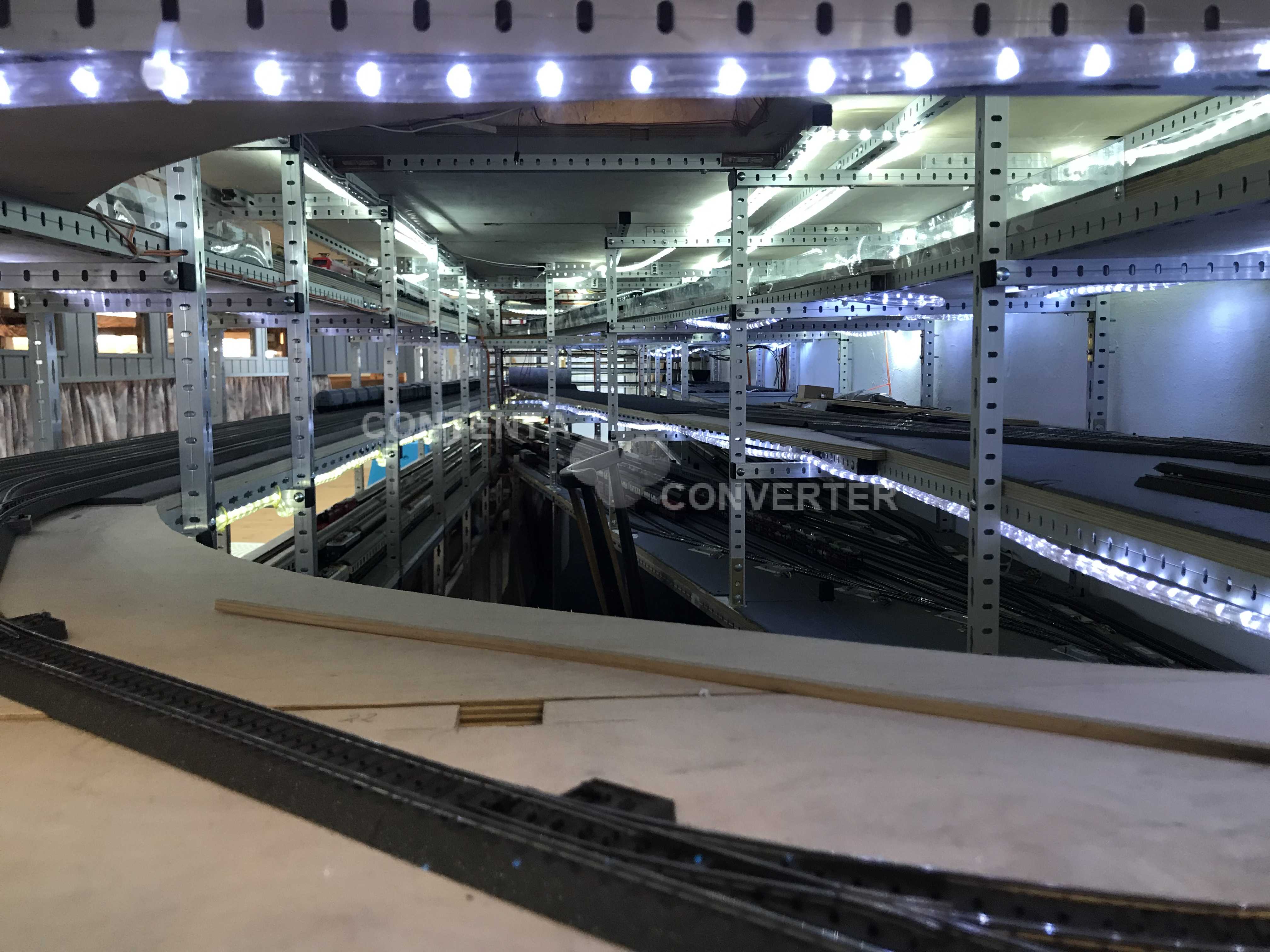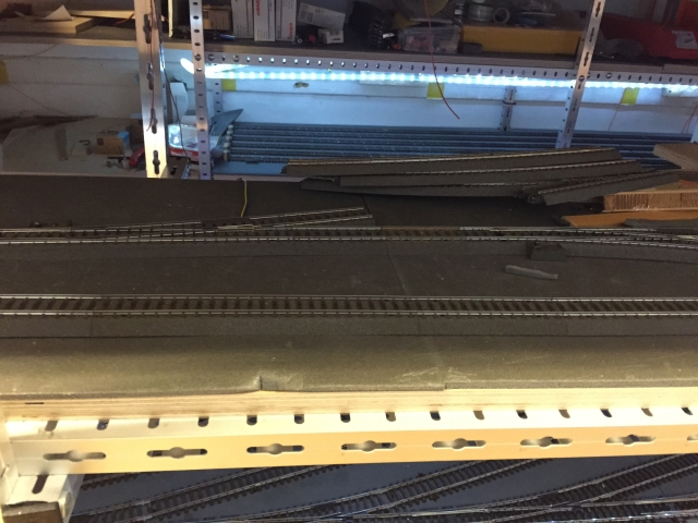 Danach wurde auch gleich die Leuchtleisten für diesen Abschnitt verlegt, so dass wir auch genügend Licht für den Schattenbahnhof bekommen.