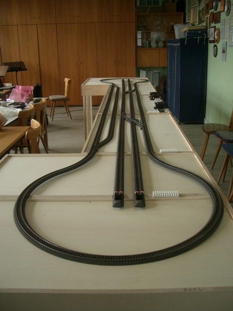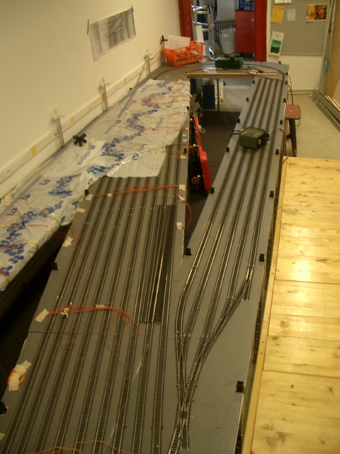 Die Zufahrt zum Schattenbahnhof sowie drei Schattenbahnhofsgleise für längere Züge sind schon fertig verlegt.