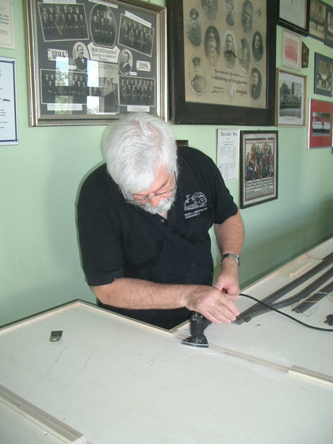 Bild 6 - Rainer und Volker beim Befestigen der Gleise