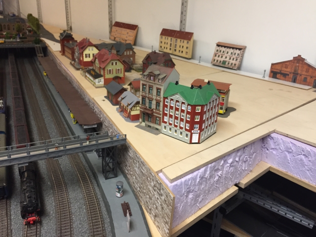 Hierfür war es erforderlich, dass eine Brücke über die Gleise vom Wendel zum Hauptbahnhof Schöfferstadt führt. Zum Bau der Brücke hat Volker eine Woche Zeit benötigt. Sie sieht sehr gelungen aus und könnte glatt mit einer Brücke aus dem Miniatur-Wunderland konkurrieren.