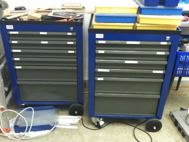 Man glaubt gar nicht, wie viel Zeit man mit der Suche nach Werkzeugen verbringt: gefühlt die Hälfte der Arbeitszeit. Aus diesem Grunde haben wir die Schränke sinnvoll eingerichtet. Thomas und Gerd haben jede Schublade mit Moosgummi ausgelegt und Schublade für Schublade eingeräumt und auch gleich entsprechend beschriftet. Jetzt müssen nur noch die fleißigen Helfer, die Werkzeuge dahin zurückpacken, wo sie hingehören.